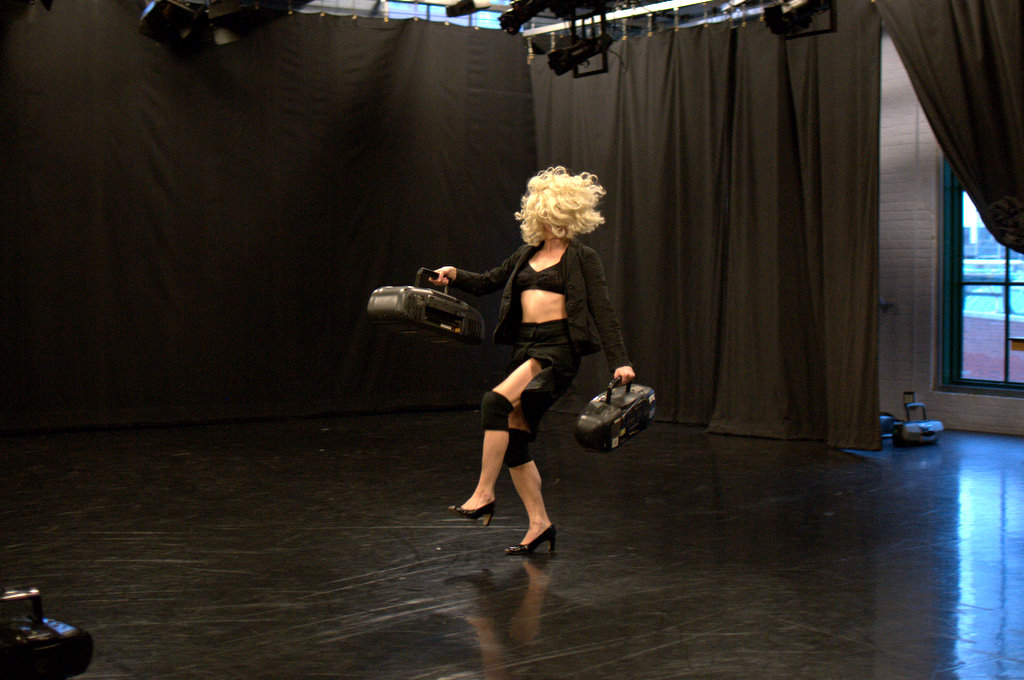 Reinvention, ritual, and requiem drive this solo work, inspired by visual artist Cindy Sherman’s Untitled #122 and Mozart’s Requiem Mass in D Minor. Creating character through a mix of dance and Bouffon (the dark clown), Burpee shares the stage with an ever-increasing amount of portable stereo systems. These boom boxes become an accompanying choir for a provocative character’s extraordinary rite of passage.